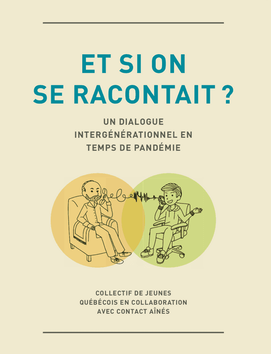 The "Et si on se racontait?" program is an intergenerational project that brings together seniors and young people around an intergenerational dialogue. Initiated by CEGEP student Maxine Joly-Chevrier and OBNL Contact Aînés in March 2020 following the COVID-19 pandemic, this project pairs young people and seniors over the phone and by videoconference for a few weeks, so that together they can write about each other's lives. All subjects are approached with kindness, attentiveness and respect!